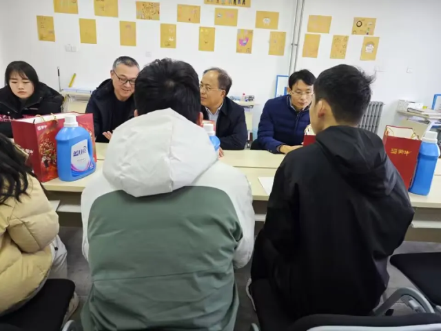 在活动过程中,领导和老师们深入了解了学生们的生活状况,针对学生可能遇到的困惑和问题,进行了一一解答。张福善强调安全无小事,希望每一位同学都能在大学期间平安顺利,叮嘱学生们在课余时间多发展自己的爱好,提高个人修养,利用假期时间多做志愿活动。刘子亭则提醒同学们回家路上注意安全,嘱咐同学们无论是家庭或生活中遇到的困难都可以向老师反映,寻求帮助。同时,汤庆新对同学们现有的困难进行了详细的询问,与同学们共同探讨解决问题的方法,寻求健康成长之道。