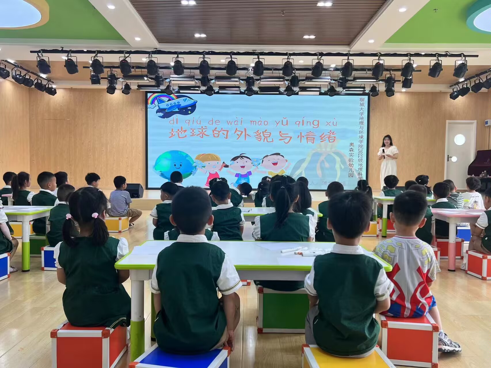 为提升大学生的社会实践能力,增强学生的社会责任感,激发孩子们对地理科学的兴趣,培养他们的探索精神,8月4日,hg8088皇冠登录入口2022级1班团支部于聊城市奥森实验幼儿园举办了“六五环境日 绿色校园行”社会实践活动。