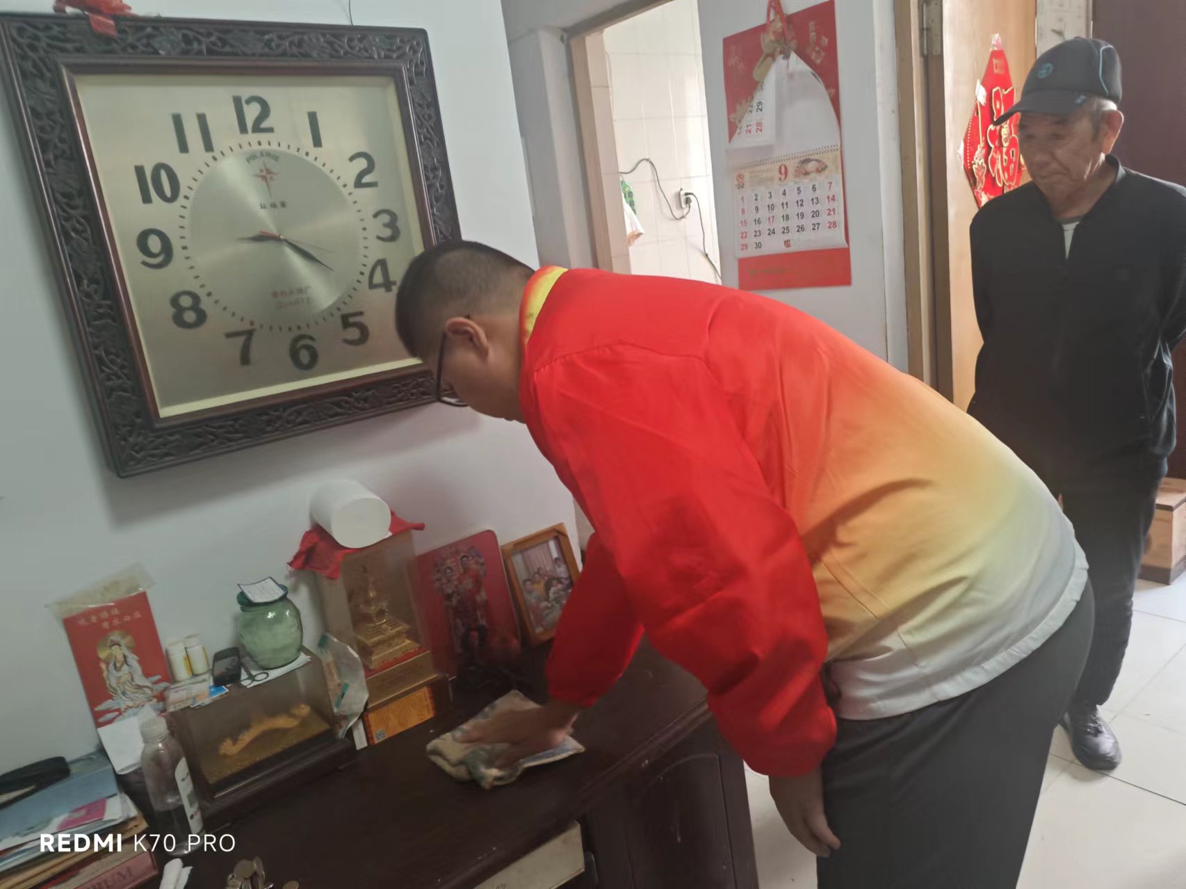在居民家中,志愿者们怀揣着对长辈的尊敬与关爱,细心地为老人们打扫房间、整理床铺,用勤劳的双手为老人们打造了一个更加温馨、整洁的生活环境。他们不仅用实际行动表达了对老人的尊敬,更通过亲切的交谈,耐心倾听老人们的故事,分享自己的学习趣事,为老人们带去了欢笑与陪伴,有效缓解了他们的孤独感,加深彼此间的情感交流。