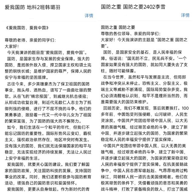 在创作过程中,同学们认真查阅资料,深入思考国防的深刻内涵与重要意义。从不同视角出发,抒发对国防事业的见解与情感。有的征文从历史角度出发,详细回顾了国防事业历经的艰难岁月和重要事件;有的则基于当前形势,理性分析了国防领域面临的挑战与机遇,提出了自己的独到见解;还有的则聚焦于未来,对国防事业的发展进行了科学预测和合理规划。这些征文不仅表达了同学们对国防事业的热爱和支持,也展现了同学们深厚的爱国情感和责任感。