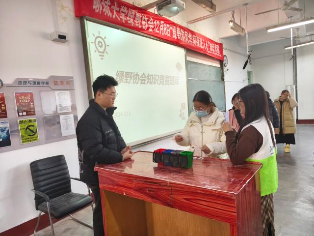 为倡导绿色生活方式,增强同学们的环保意识,提高同学们参与环保行动的积极性,12 月 8 日,hg1088皇冠welcome绿野协会于东校区4#C306举办了“绿野蕴风华 环保滋人心”知识竞赛活动。