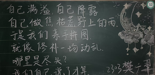 一撇一捺,妙笔生花,一字一句,意蕴隽永。为进一步加强师范生板书技能训练,夯实教学基本功,hg8088皇冠登录入口举办“方寸板书筑梦想 文化育人润心田”板书评选活动,经过对版面设计、板报内容、色彩运用、撰写方式等方面的综合考虑,2024-2025学年第三期评选结果如下: