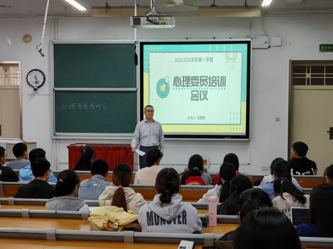 贺景华从心理委员的主要职责、常见心理问题以及同学们出现心理问题应该怎么做三个方面对心理委员进行了培训。在培训过程中,贺景华针对出现心理问题的解决方法做出特别要求,提出每一位心理委员都应保持自身心理健康,面对心理疾病应该有科学的认识和正确的态度,要给予同学们适度的关怀,如遇到严重心理问题或无法自行处理时,应该第一时间求助老师。