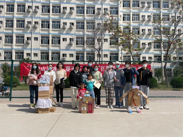 参赛选手佩戴口罩、做好防疫措施,充分利用自己日常生活中的废品,对日常产生的快递纸盒、演算废纸发挥想象进行组合拼装,制作可站立的巨型纸人,不少参赛选手巧思妙想,为自己的纸人赋予拥抱、献花等特殊性能。赵斌燕带领的“战役超人队”以疫情为大背景,为制作的纸人戴上口罩、穿上披风,生动的作品吸引了周围的小朋友参观,霍长远带领的“小新队”结合废品特点,将废纸壳、快递泡沫相结合,将购买电子产品后产生的垃圾充分利用,在纸人的脚部加入户外随处可见的石头保持纸人稳定。活动结束后,组织者将活动现场剩余的纸屑碎片、塑料胶带等收拾带走,并将产生的废品垃圾分类回收,保持了操场卫生,本次比赛由梁晚亭带领的队伍获得第一名,霍长远带领的队伍取得第二名。