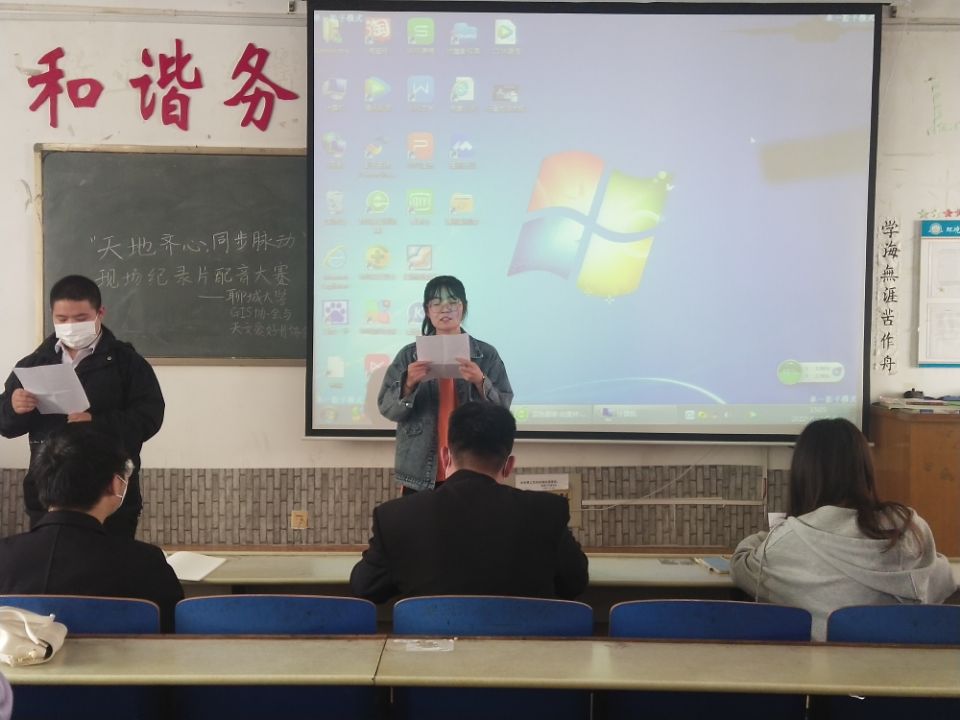为加深同学们对地球家园的了解,激发同学们对未知领域的探索兴趣,锻炼同学们展示自我的能力,提升同学们的文化素养,4月30日,hg1088皇冠welcome天文爱好者协会与GIS协会于东校区4#B208举办了“天地齐心,同步脉动”纪录片配音大赛。