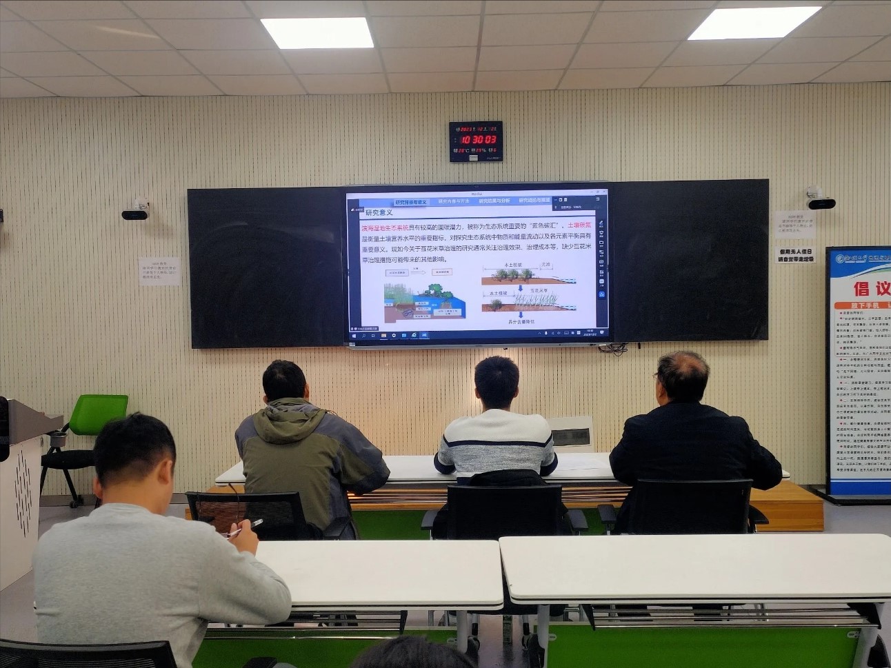 本期论坛围绕黄河三角洲湿地碳循环与全球变化、大气污染源解析、生物炭利用效应、黄河下游地区高质量发展等主题展开。报告人分别就各自的科学问题及研究成果进行了汇报。专家组进行了提问并提出意见建议。参加论坛的同学们就科研选题、研究方法、数据分析、学术论文写作等与报告人和专家进行了深入交流。同学们纷纷表示,通过此次论坛不仅开拓了学术视野、拓宽了科研思路,同时也加强了课题组间的互动交流,收获颇丰。