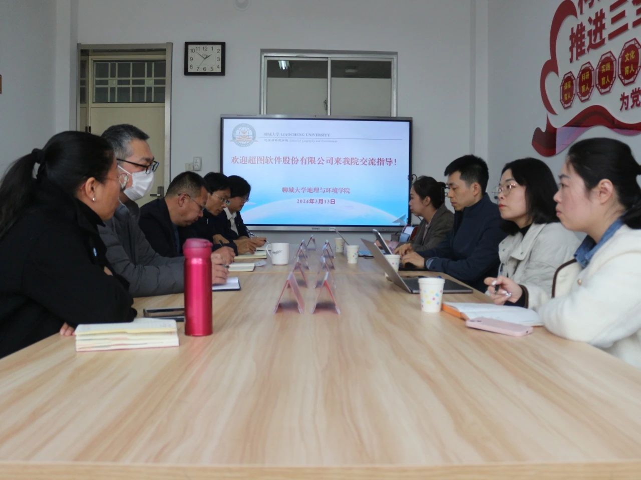 为探讨新的合作模式,进一步扩展校企合作,拓宽毕业生就业渠道,提高毕业生就业质量,3月13日,北京超图软件股份有限公司集团总工程师兼平台产品线总裁、研究院副院长胡中南和超图软件山东大区总经理李蓉蓉应邀来皇冠官网交流工作,学院党委书记井岗,党委副书记、副院长张福善,副院长汤庆新热情接待来访人员。